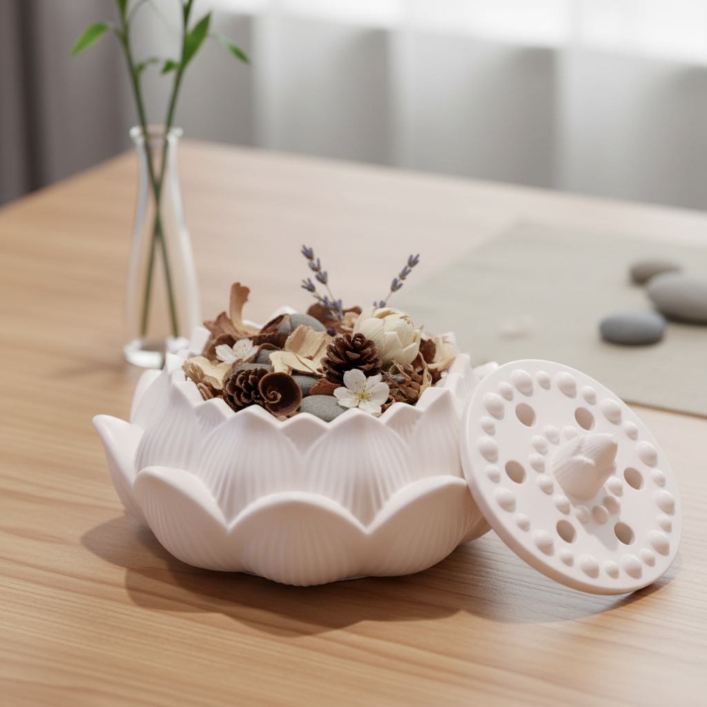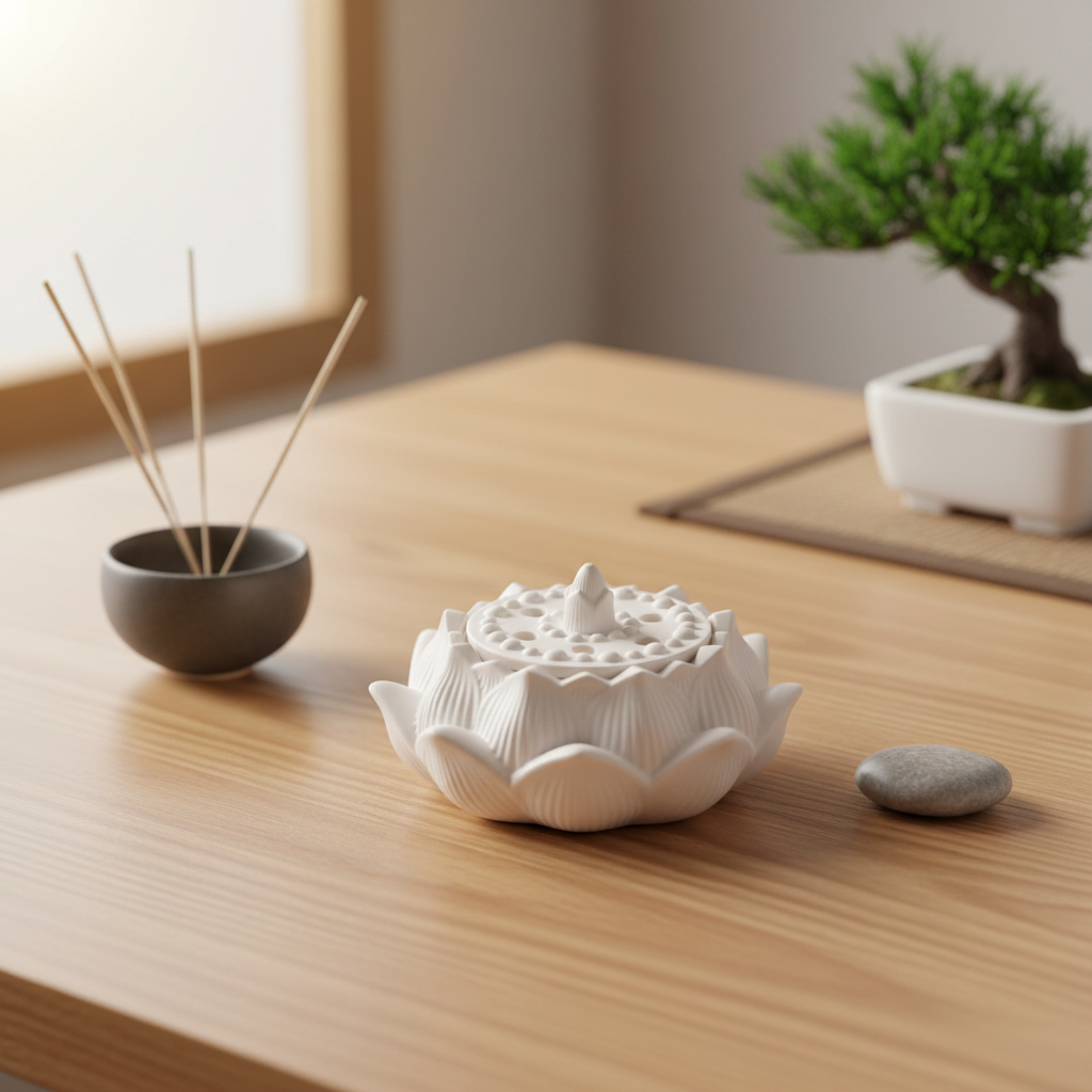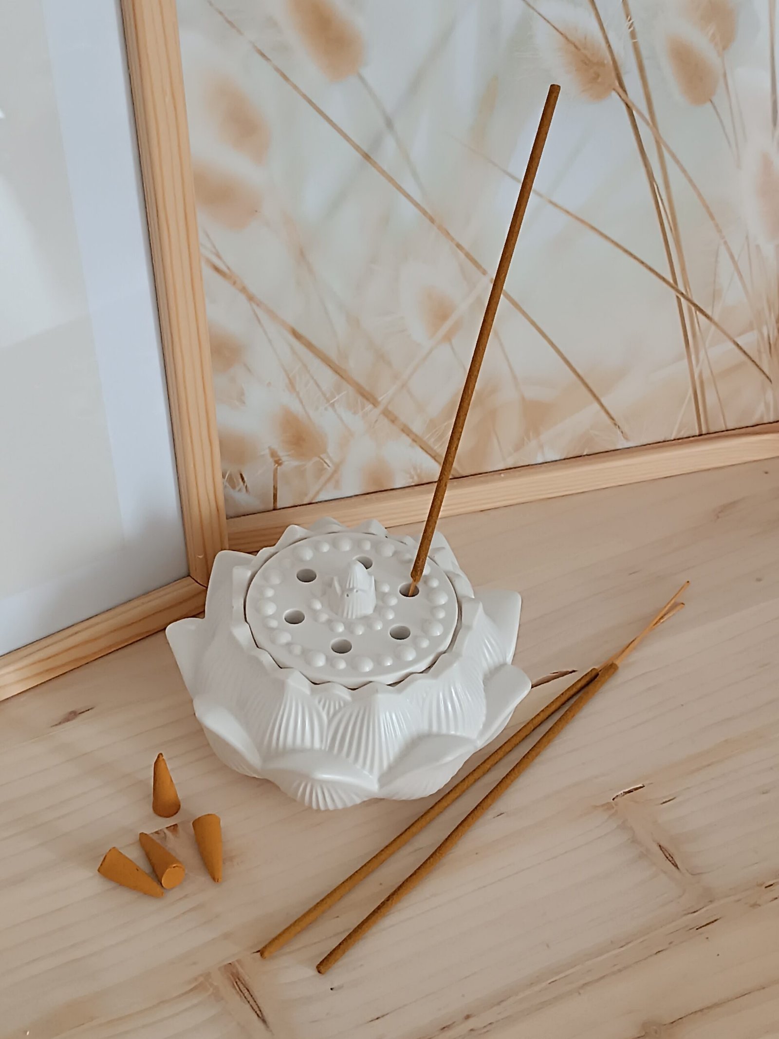 Il nostro brucia incenso in jesmonite minimal design a forma di fiore di loto unisce eleganza e simbolismo in un unico e raffinato oggetto. Il fiore di loto è simbolo di purezza, rinascita e crescita spirituale. Questo accessorio non è solo pratico, ma rappresenta anche un invito alla serenità e alla contemplazione ogni giorno.